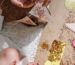 • Tabeeb Haider on Girls Cotton Jersey Terry Knitted Patch Shirt with Cotton Floral Trouser & Hat in 2 Offbeat Colors (3pc)