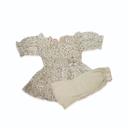 Girls Net Fancy Frock with Cotton Jersy Shirt and Tights In White-Purple Color (3pc)