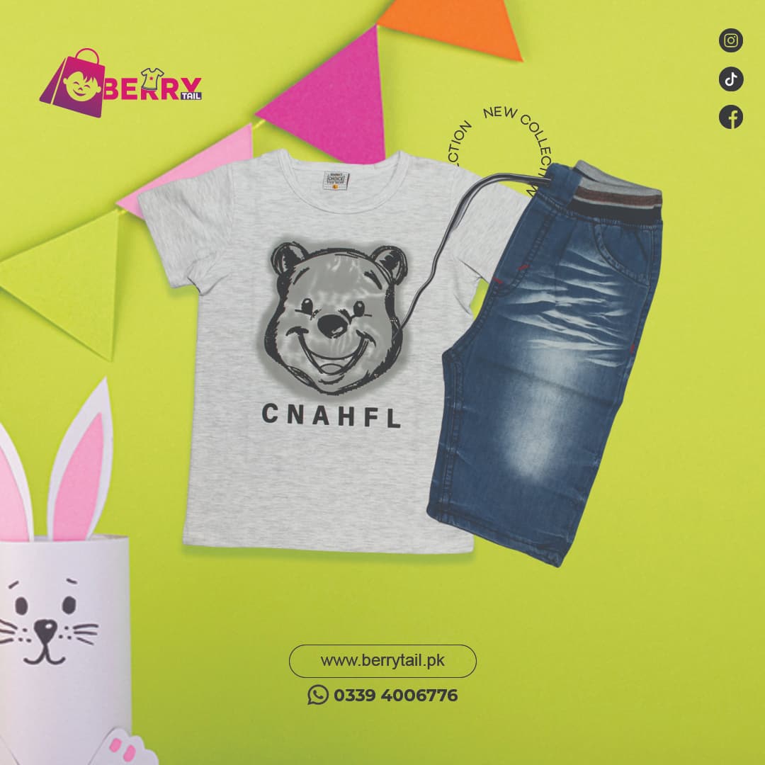 Be the first to review “Boys Cotton Jersey Bear Lampoon Grey T-Shirt with Jeans Shorts (2pc)” Cancel reply