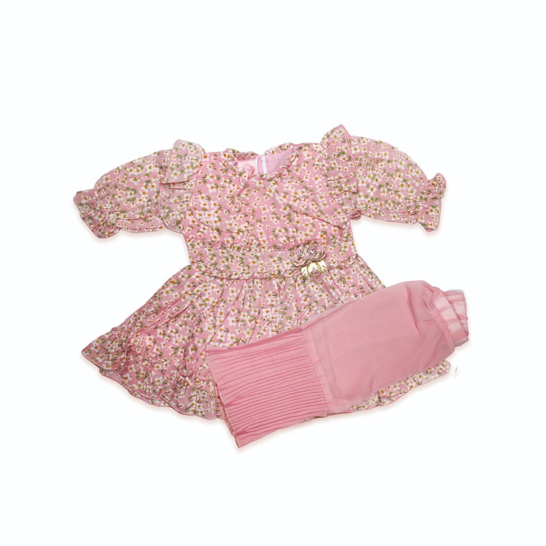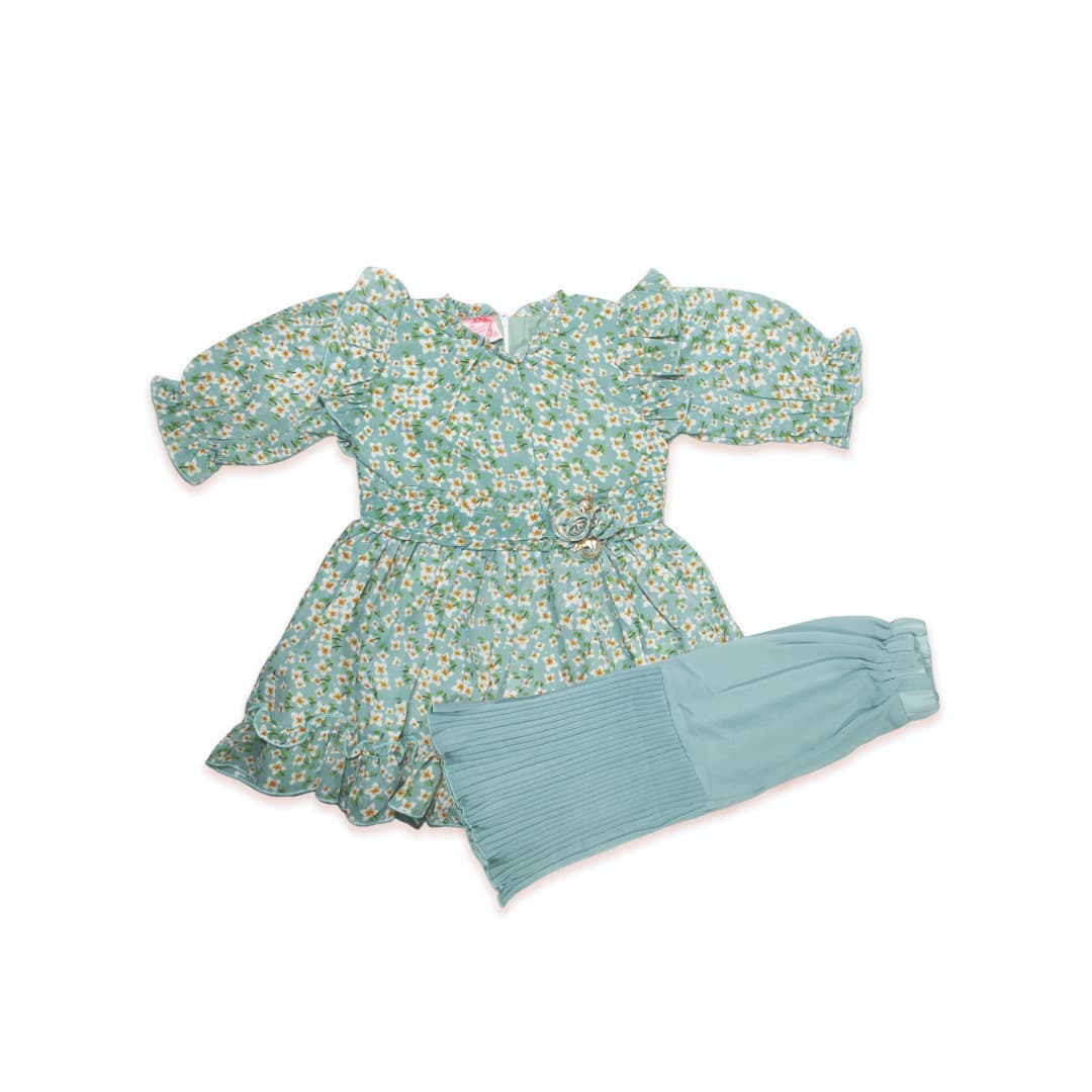 Girls Georgette Causal Frock and Trouser in 3 Offbeat Colors (2pc)
