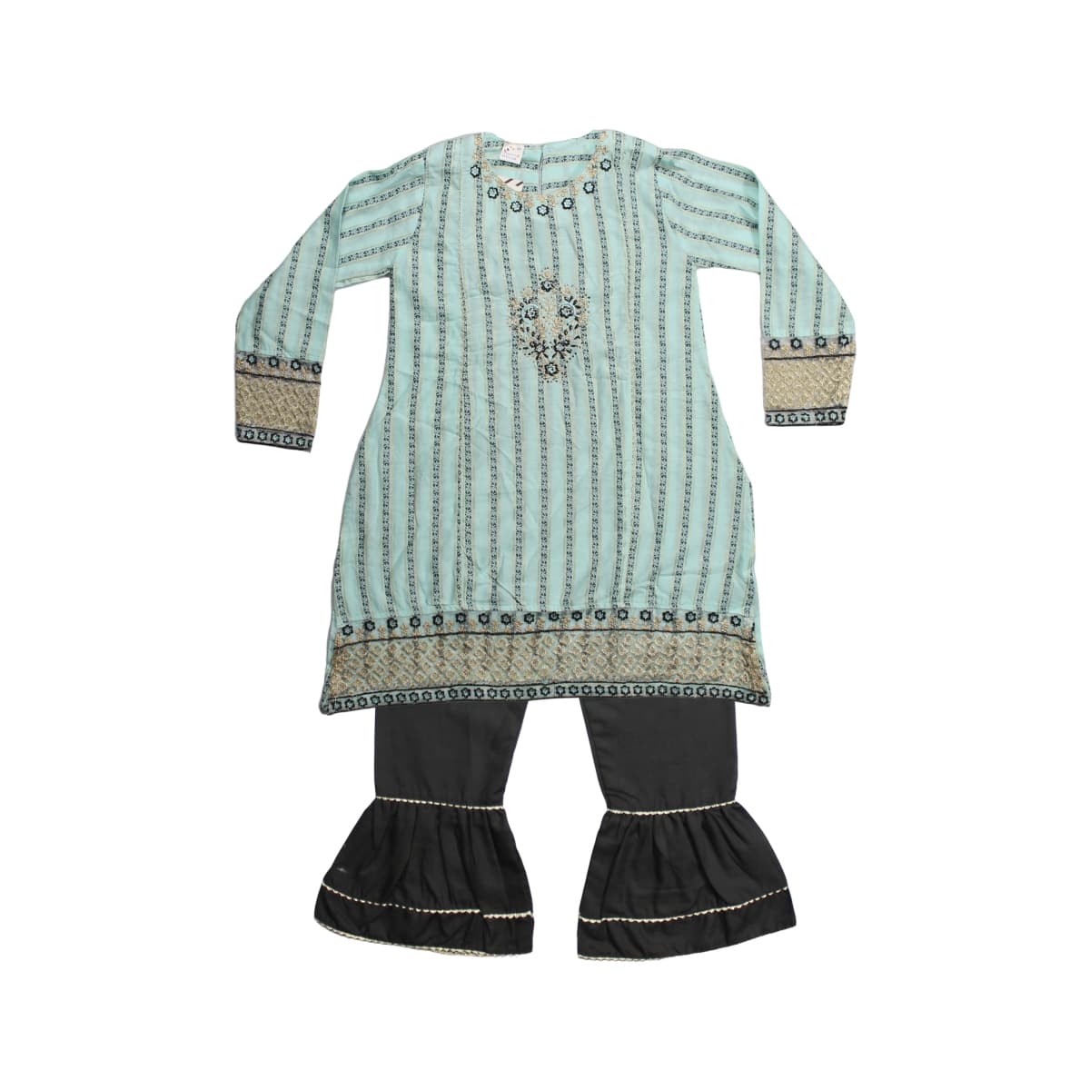 Grils Embroided Cotton Shirt With Cotton Culottes Trouser in Sea Green Color (2pc)